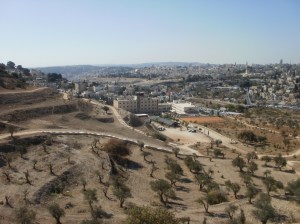 The first stop was a photo-opportunity atop the Mount of Olives. We poured out of the bus to look down at a hill side that boasted a few rows of scratchy olive trees. Some of them, our guide told us, were more than two thousand years old. Beyond the hill stood the limestone walls of the Old City, with the golden Dome of the Rock shimmering in the mid-morning sun.