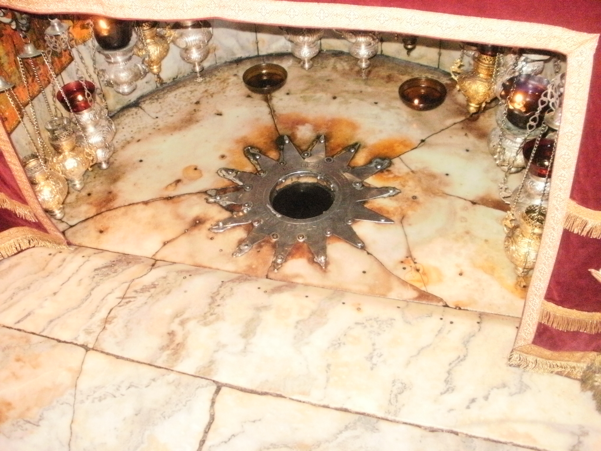Behind the glittering altar, where Orthodox priests stood swapping liturgical responses, is a tiny grotto, said to be the stable where Mary gave birth to Jesus. On that spot is a silver star that the faithful kneeled over to touch or kiss. A few yards away, a niche in the rock where Mary swaddled the infant.