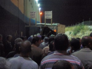 The economy in Palestine is in such a poor state that the only way these men can feed their families is by making this daily crossing into the Palestinian area of East Jerusalem and some go further and cross into Israel and those that have a job are the lucky ones. A Palestinian cannot enter East Jerusalem or travel further, without his identity card, his work permit and his hand print matching the papers. Israel will not allow Palestinian men to enter until they are 28, although another told us the age was 32, which is possible as the rules are constantly changing. To enter East Jerusalem and Israel to work they must have a work permit, which they obtain through their employer who must be registered and who has paid the tax on “foreign workers” by the 15th of the month or the work permit is cancelled, many workers only discover this at the checkpoint. There are according to Machsomwatch*, many incidences of corruption and forgery with work permits, even when valid an employee is unlikely to challenge an employer over any illegal or dangerous practices in the workplace, as they would risk having their work permit cancelled.
