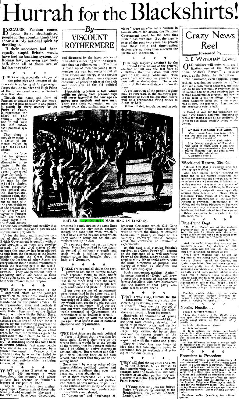 But hardly surprising given its unerring ability to find itself on the right side of history. This is the newspaper whose owner in the 30s was the best mate of Hitler and Mussolini. The same owner, the first Viscount Rothermere, who published a charming leader entitled “Hurrah for the Blackshirts” in praise of Oswald Mosley’s fascist thugs.