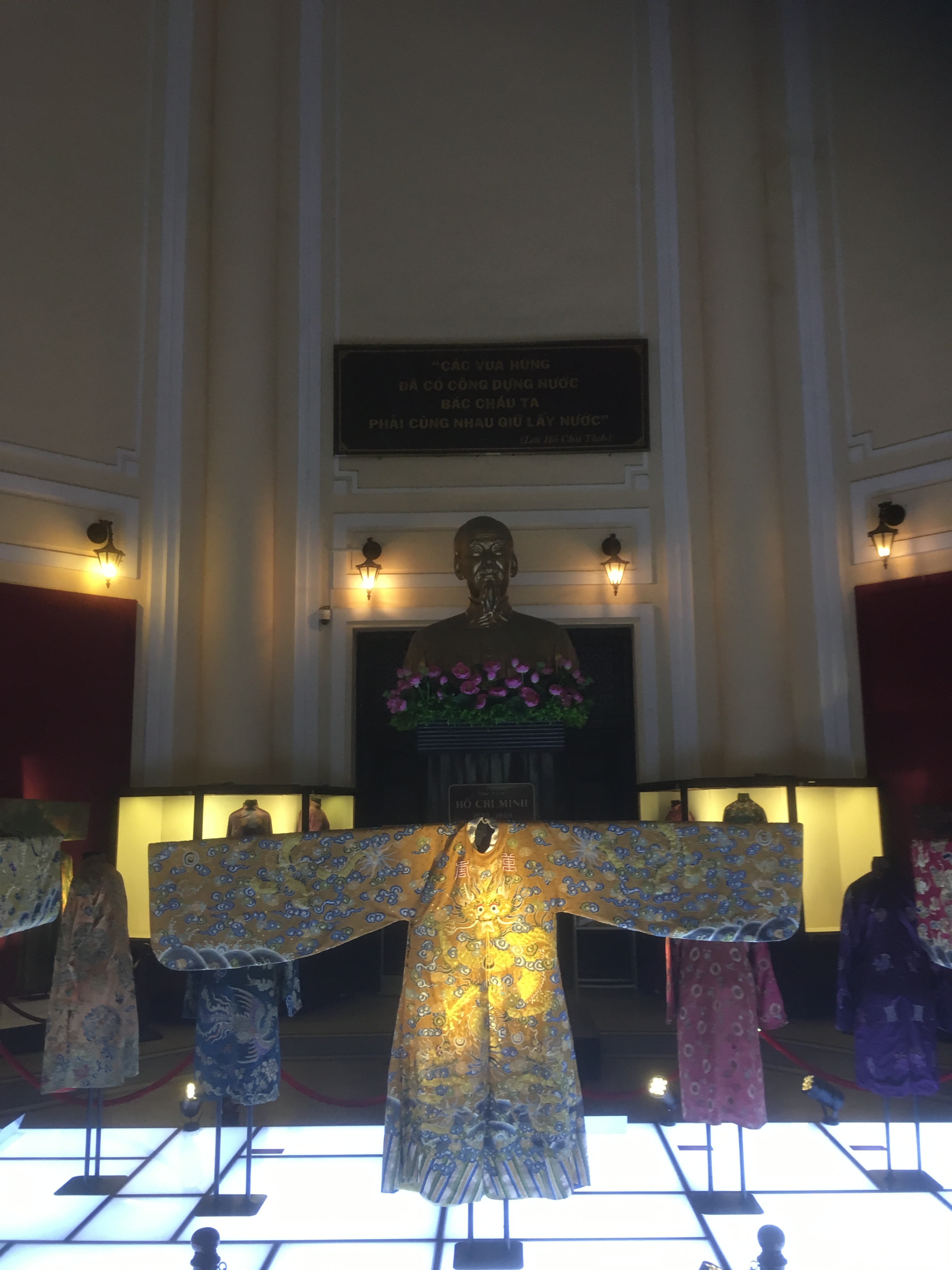 The experience was enlightening if not wow. It started off well, with an exhibition of costumes from the imperial era. Which era was not entirely clear. But for sure, the uniform of the court lieutenant of the guards (second class) was far superior to anything you would see in Buckingham Palace. And the Emperor’s costume, artfully displayed just beneath a golden statue of Ho Chi Minh, was magnificent.