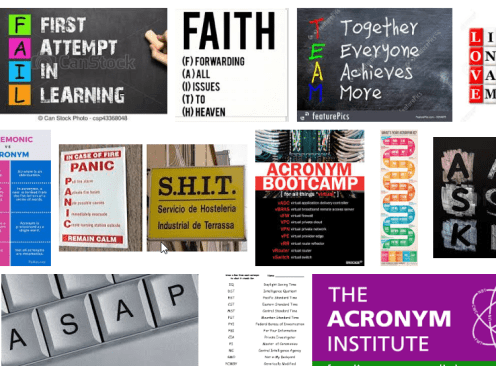 There was a time when acronyms were devices used to spare us from having to spell out concepts and things that can only be described by using multiple words. Unlike the Germans, who happily string nouns together in concatenations that take up entire lines of a page, we English-speakers consider compound nouns rather bad form.