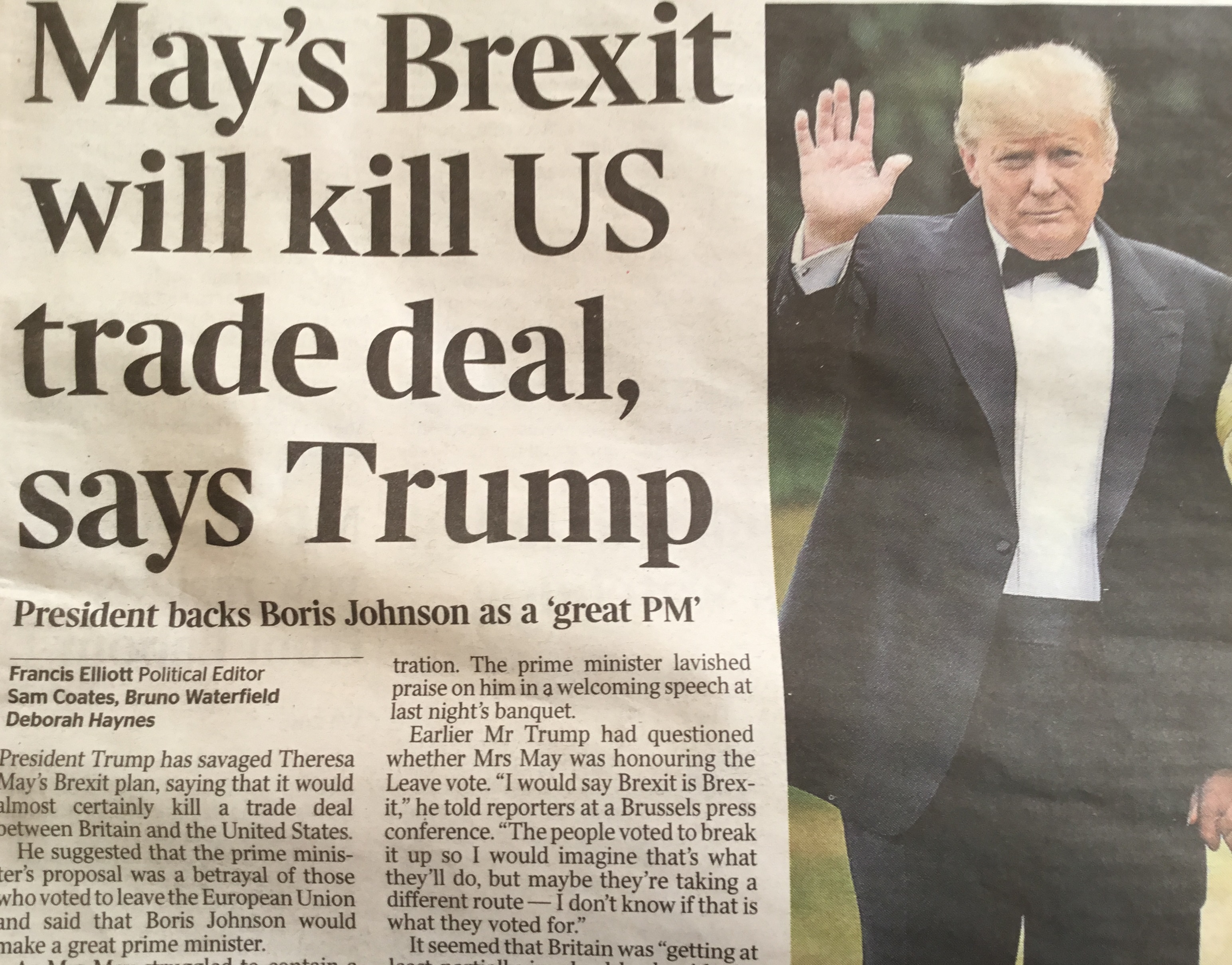 Thus began the visit of a man who treats his country’s allies as vassals to a country held to ransom by politicians who believe that any kind of a deal with the European Union short of a hard exit will turn it into a vassal.