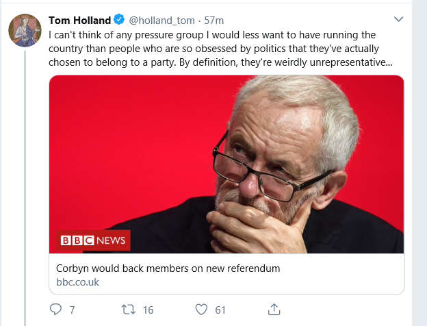 I believe that floating voters are an indicator of a country’s political and social health, provided that the reason for their non-alignment is engagement, not apathy. The more there are, the healthier we are. As the historian Tom Holland said in a recent tweet: