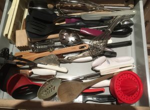 Third project: purge the kitchen. How was it that we managed to accumulate enough pots, pans and cutlery to start a restaurant? Do we really need fifteen pots, ten metal trays, twenty mugs and countless knives, forks and spoons? That’s not including more stuff stashed away in the garage.