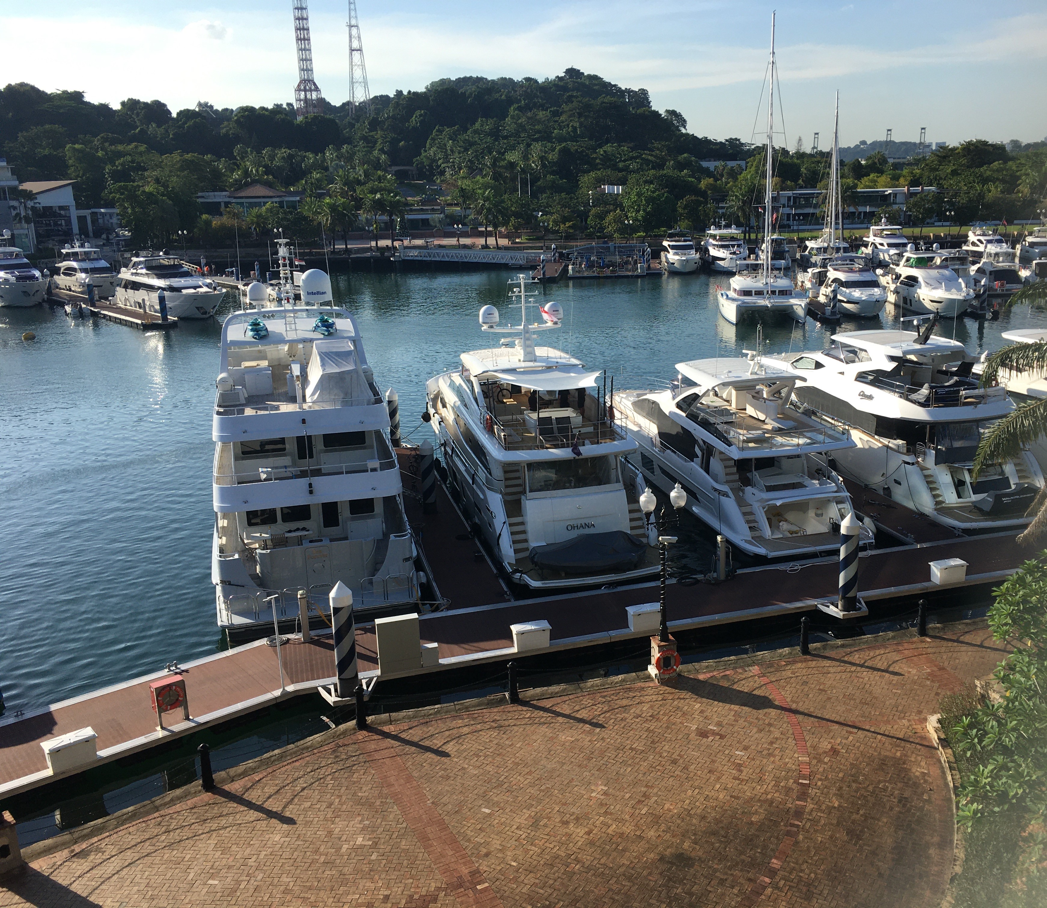 We’re spending the next few days in people-watching heaven. Not the “this is life on the street” kind of people watching. And certainly not the voyeuristic type either. Just a subset of prosperous souls who pass by on a boardwalk three stories below the balcony overlooking a marina on the resort island of Sentosa.
