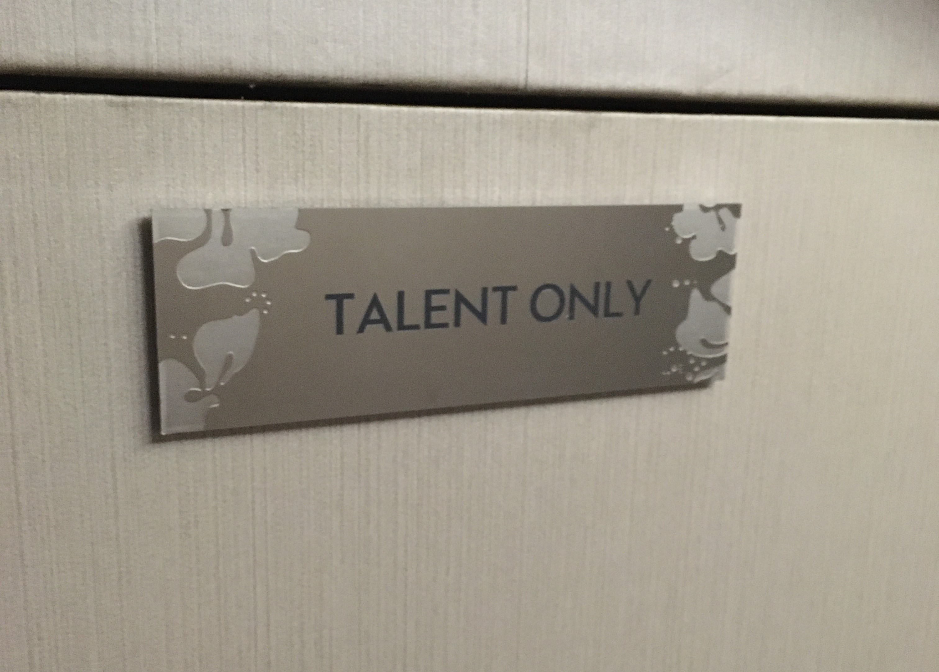 On our way back to our room, past walls adorned with illuminated sculptures that look like misshapen, milky breasts, I notice a cupboard marked “Talent”. By which presumably the hotel mean staff. Seems like everyone is a talent these days, even if they have none. Very HR.