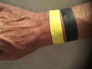 Since we have no dogs, children or phones to exercise, we do lengths in the pool. This is not as simple as you might think. It’s a huge pool. Our corona-cautious hotel rations out swimming time in chunks of two hours. If you’ve booked in to one of the slots, you can swim. If not, go away. Our status is indicated by wrist bands. The colour depends on what time-slot you’ve booked. Plus black if you’re fully vaxxed. That way, I guess, you can take evasive action away from anyone without a black wristband. Including kids, of course.