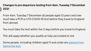 There’s been lots of stuff in the media about chaos and confusion around the new travel rules introduced by the UK. They specify that those travelling back to the UK must take a COVID PCR or lateral flow test within two days of their return to the country. This article on the BBC website talks about the impact.