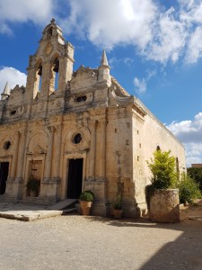 Off we go to Souda Bay. We booked a trip to a monastery where in the 19th century hundreds of people resisting Ottoman rule blew themselves up with gunpowder along with an equal number of soldiers in the monastery’s wine vault. The church was nice, but overall not the most exciting visit, enlivened only by the arrival in a Porsche of a guy and his girlfriend, who was wearing shorts about three inches below her buttocks. Not the most appropriate clothing for a Greek Orthodox holy site. Our guide reproached her in no uncertain terms, though she kept gliding around with no apparent sense of remorse.