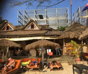 No doubt this little resort, ran by a French guy, will give way to the concrete tsunami before long. Until then, it’s still possible to dine in relative peace and quiet with the owner’s choice of music in the background: Erik Satie, Ali Farka Toure, Cannonball Adderley, the Beatles and Monteverdi. And a reminder of times gone by as impossibly frail-looking female backpackers waft past to check into their huts across the road.