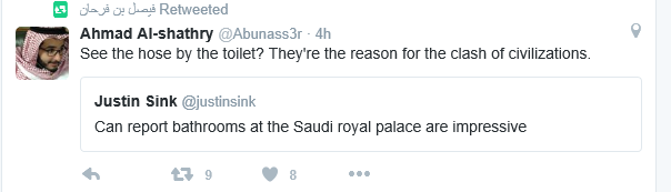 Then there’s Ahmad Al-Shathry’s claim that toilet hoses are the reason for the clash of civilisations. I have to disagree.